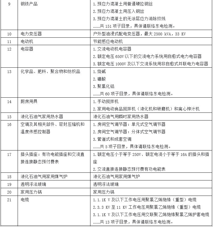 3.合格性认证(COC),共涉及2类产品,具体产品请见下管制产品清单表3所示。