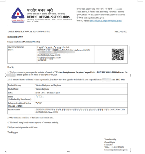 凡是被列入强制清单的产品必须根据合格评定计划进行认证或注册后才可以在印度销售,且制造商获得证书后才被允许加贴认证标志。