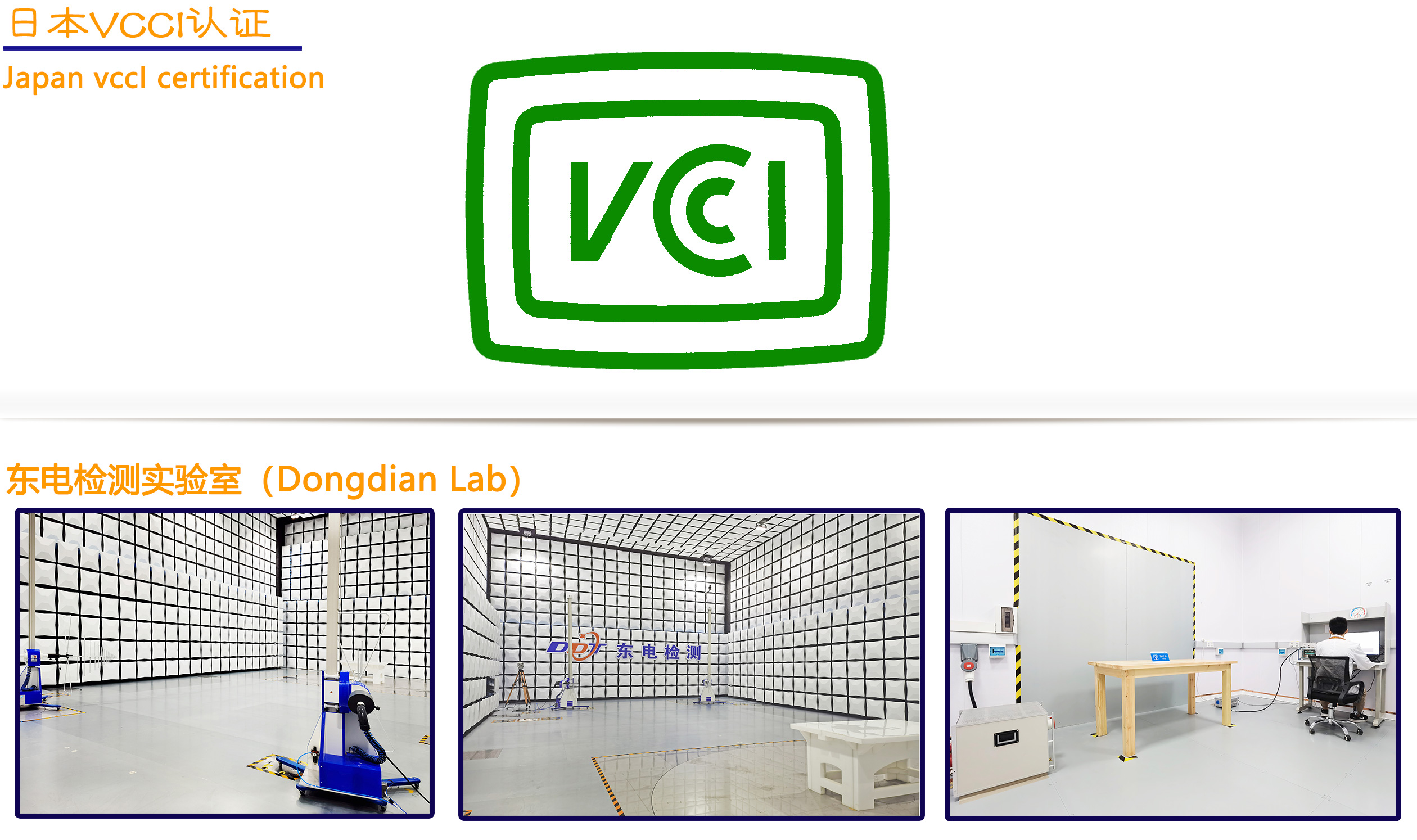 VCCI 是日本的电磁兼容认证标志,由日本电磁干扰控制委员会 (Voluntary Control Council for Interference by Information Technology Equipment) 管理, VCCI 认证是非强制性的,但是在日本销售的信息技术产品,一般会被要求进行 VCCI 认证。制造商首先应申请成为 VCCI 的成员,才可以使用 VCCI 标志。为了获得 VCCI 的认可,所提供的 EMI 测试报告必须由 VCCI 注册认可的测试机构签发。日本没有抗扰度方面的标准。