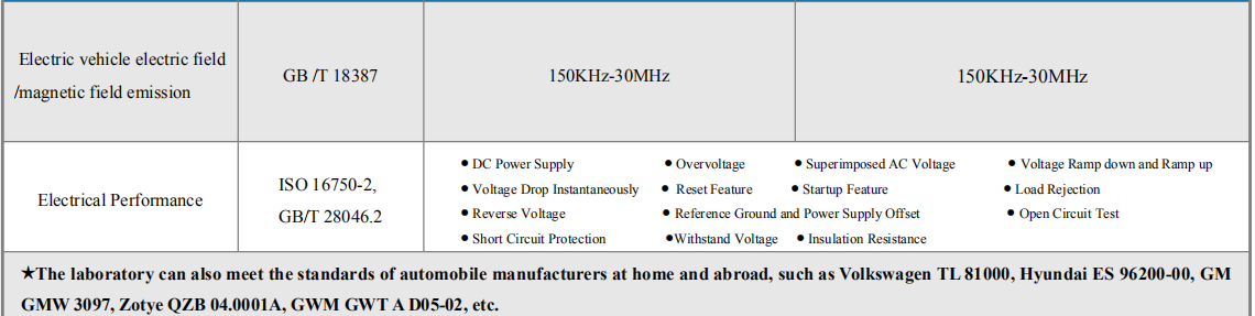 Automobile Electronics Laboratory Testing Items and Standards