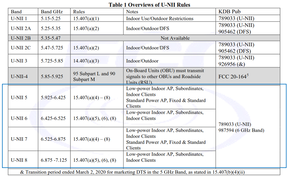FCC Wi-Fi 新增的6GHz频段: