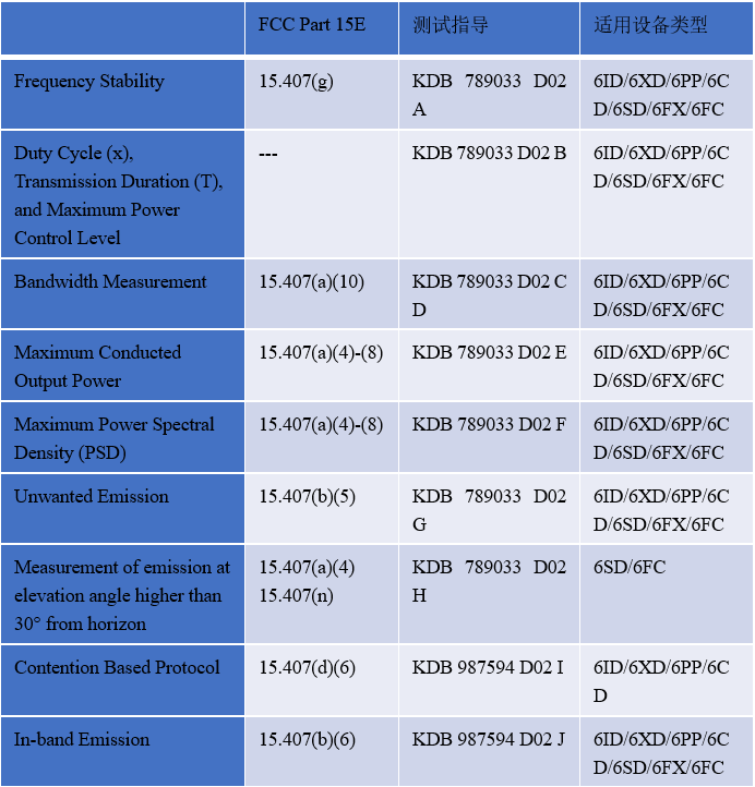 6GHz频段的测试要求: