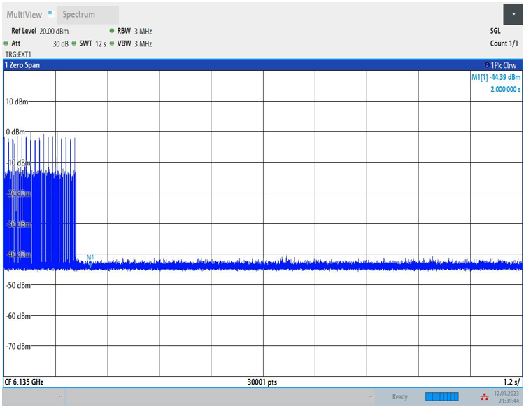 检测到AWGN信号,EUT停止传输, 测试例如下: