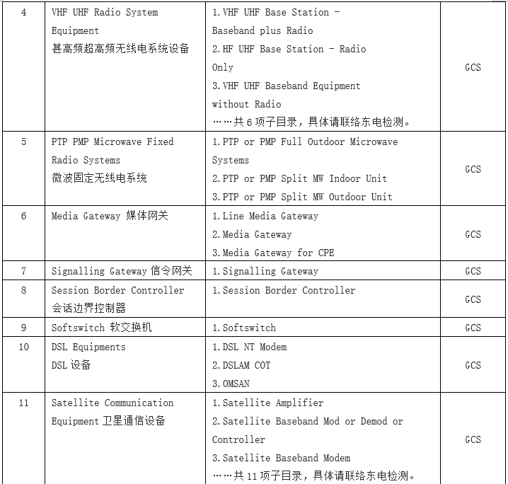 目前,TEC已经出台了四批强制产品列表,包括各种电话机,传真机,多媒体会议设备,物联网网关,路由器,追踪设备,通讯设备,2.4GH和5GHz设备等等,详见如下表1所列。