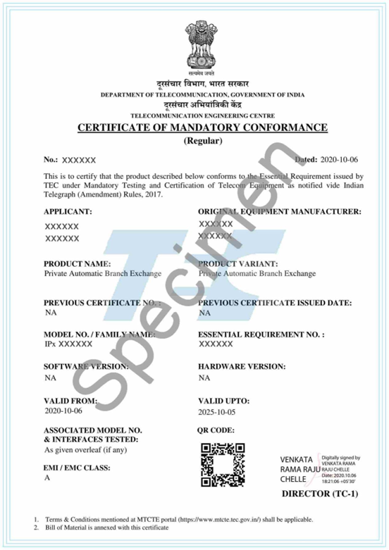 印度政府在2017年9月5日发布的公报通告G.S.R. 1131(E)中规定,任何电信设备在进口到印度或在印度销售前都必须经过强制性测试和认证。任何希望在印度销售、进口或使用的电信设备的原始设备制造商(OEM)/进口商/经销商必须获得TEC证书,并在设备上标记或贴上认证标签。TEC是印度电信工程中心(Telecommunication Engineering Center)的简称,该机构职责如下:1)发布电信产品和服务的一般要求(GR)、接口要求(IR)、服务要求(SR);