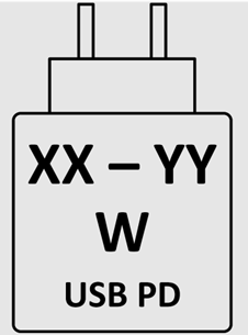 1. “XX”应该表示为无线电设备所需的最小功率,“YY”应该表示为无线电设备达到最快充电速度的所需的功率;“USB PD”是 (USB Power Delivery) 的缩写。(没有PD功能不写USB PD)