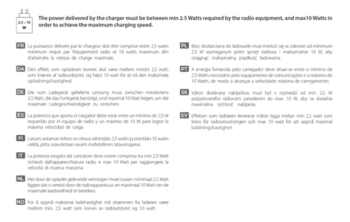 2.无线电设备附带的说明书中必须提供有关充电能力和兼容充电设备的规格信息。也可以采用QR或者其他电子显示的方式。