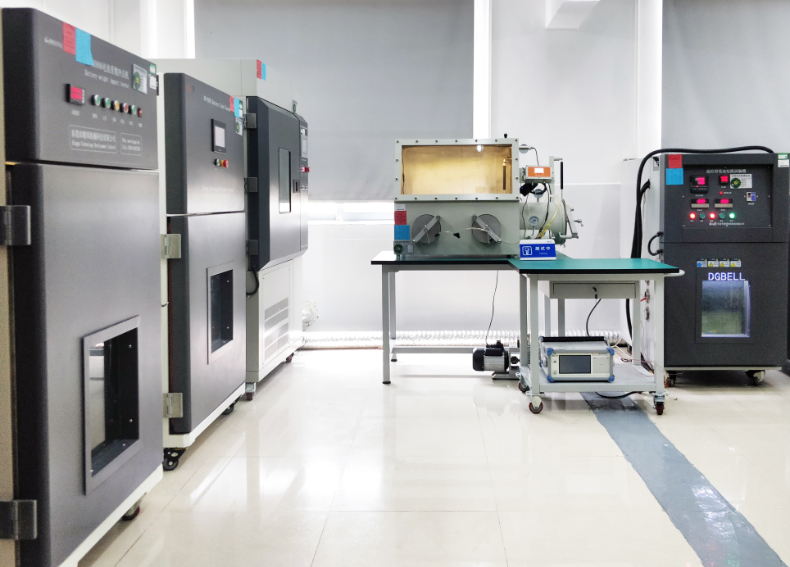 测试设备:电池挤压试验机、温控型电池短路试验机、防爆箱、模拟高空低压试验箱、电池燃烧试验装置、电池重物冲击试验机、电池跌落试验机、手套箱、电池内部短路试验机等专业设备。