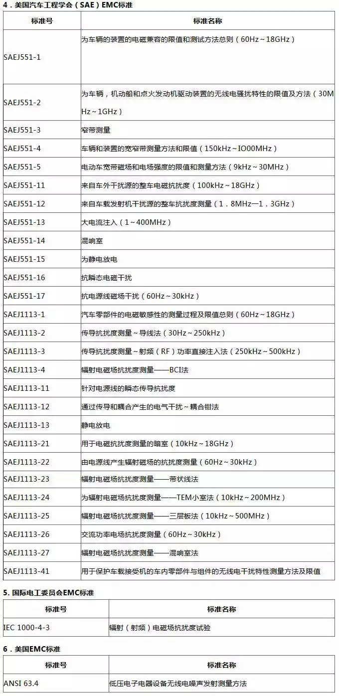 最后需要说明的是以上标准都是一些国际通用的EMC测试标准,并不含各个车厂的要求,具体各个车厂(比如通用、大众等)通常还会有自己定义的EMC限制要求,这个部分展开来会有很多,我们就没有一一罗列。