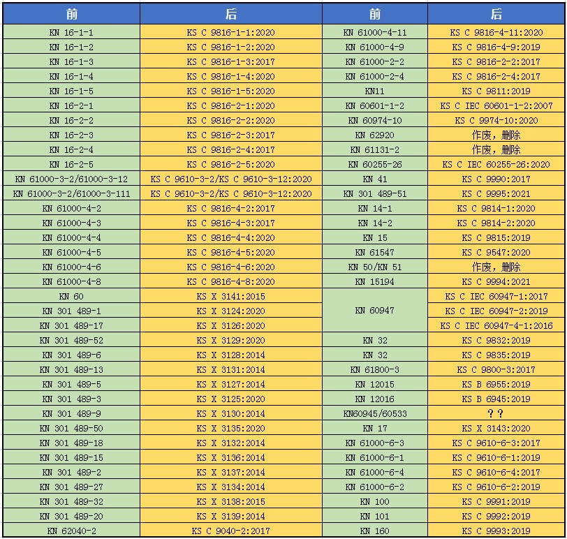 1)上月韩国电波研究院第2020-105号公告(发布日期为2020年12月23日), 将现行电磁波测试标准的KN规格转换为KS规格,公告日期三个月后开始实施。