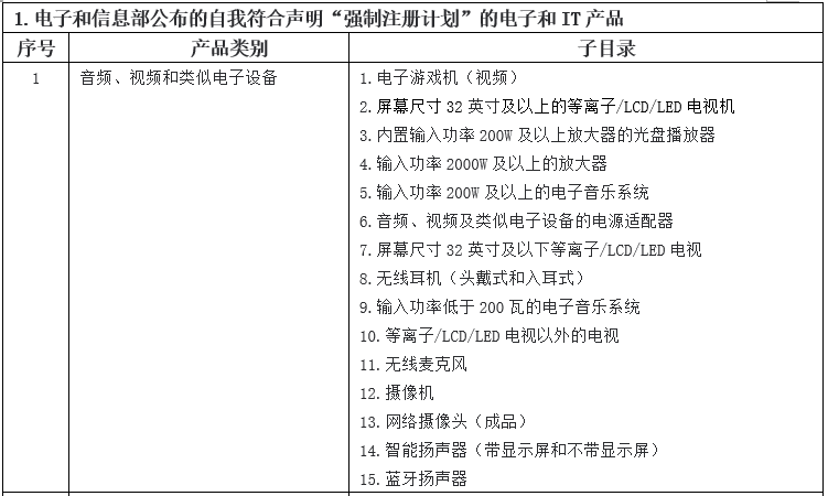 表2:BIS强制注册制度(CRS)产品清单
