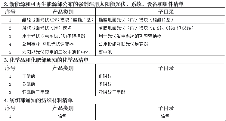 3.合格性认证(COC),共涉及2类产品,具体产品请见下管制产品清单表3所示。