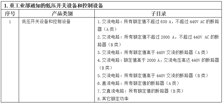 表1:强制ISI标志型式认证产品清单