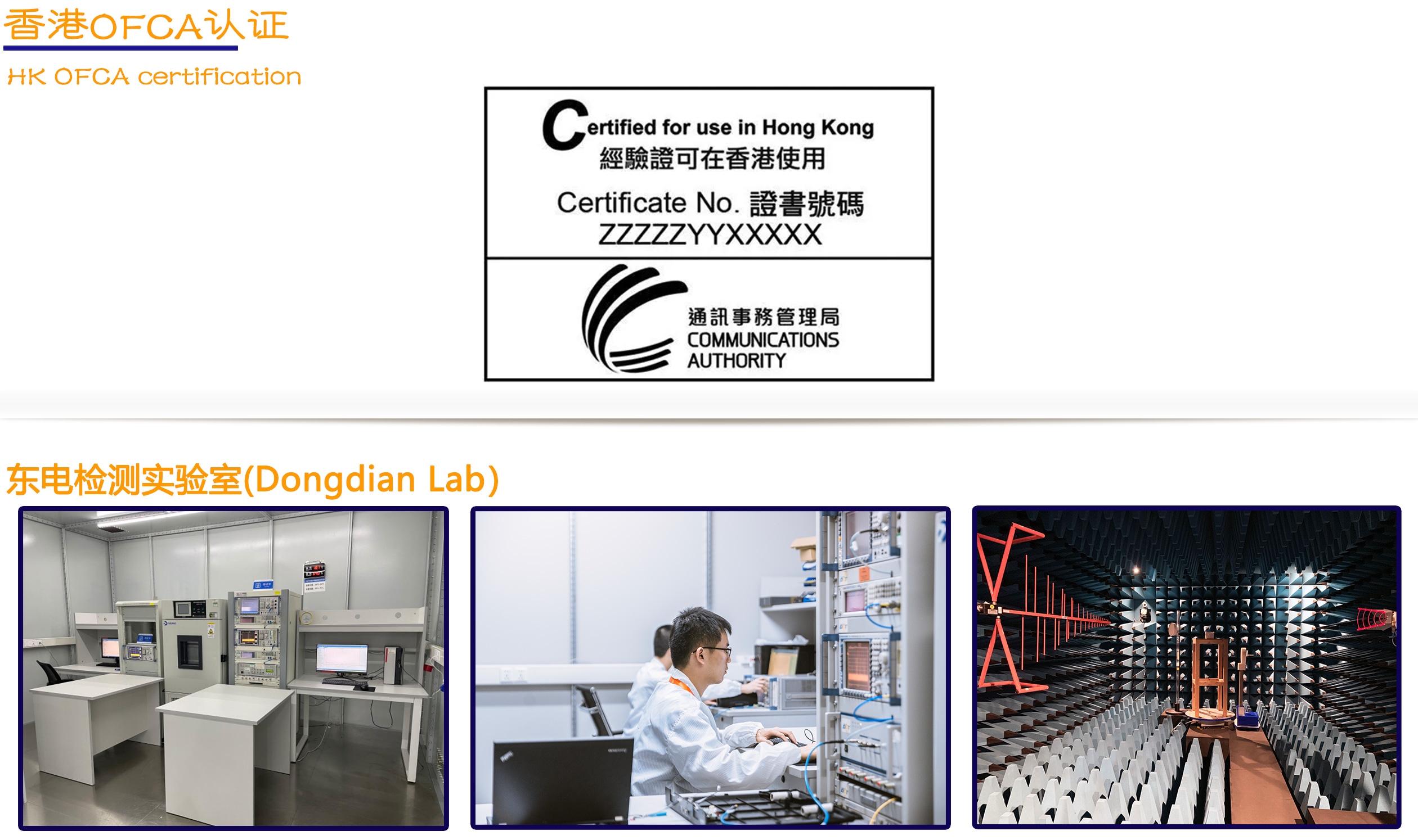 OFCA是香港的强制性无线认证,在香港销售的无线射频类和电信类产品必须符合其 要求和申请认证,并在产品上显示标志和认可号码。
