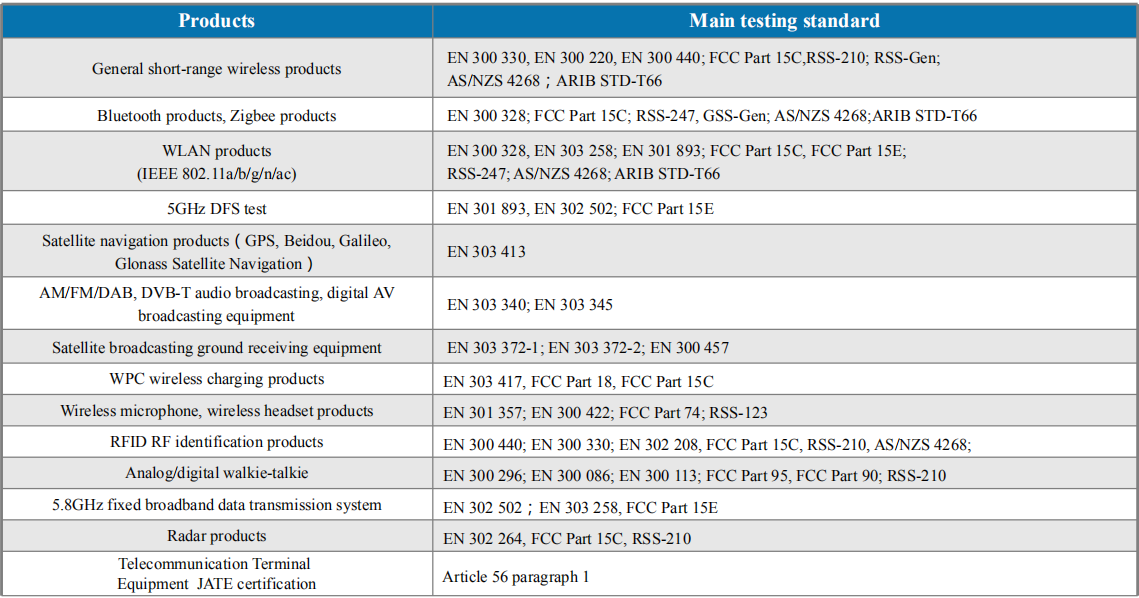 DDT RF Lab has a full set of SRD, Zigbee,Bluetooth, WI-FI, DFS, 3G, 4G RF test equipment and systems; GPS, Beidou, Galileo, GLONASS satellite navigation test system; DAB, DVB-T, DVB-S digital audio and video broadcasting test system; and more than 50 RF test equipment such as spectrum analyzer, modulation analyzer, comprehensive tester, network analyzer, microwave vector signal source, radar wave signal source, power meter, etc. The maximum test frequency in the laboratory is up to 100GHz.