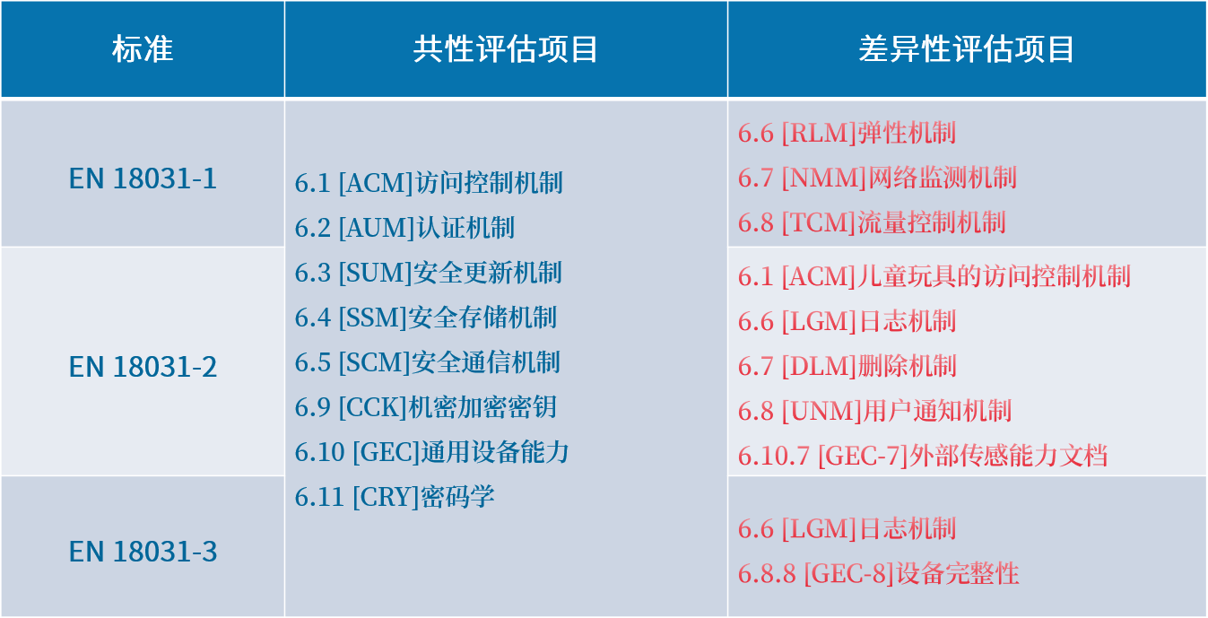 EN 18031 共性及差异性评估项目