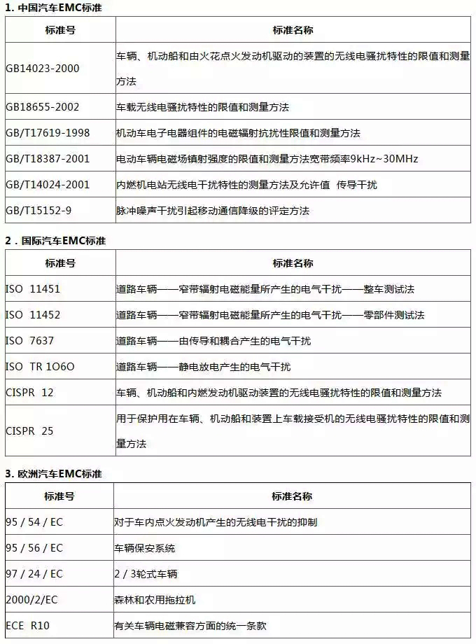 最后需要说明的是以上标准都是一些国际通用的EMC测试标准,并不含各个车厂的要求,具体各个车厂(比如通用、大众等)通常还会有自己定义的EMC限制要求,这个部分展开来会有很多,我们就没有一一罗列。