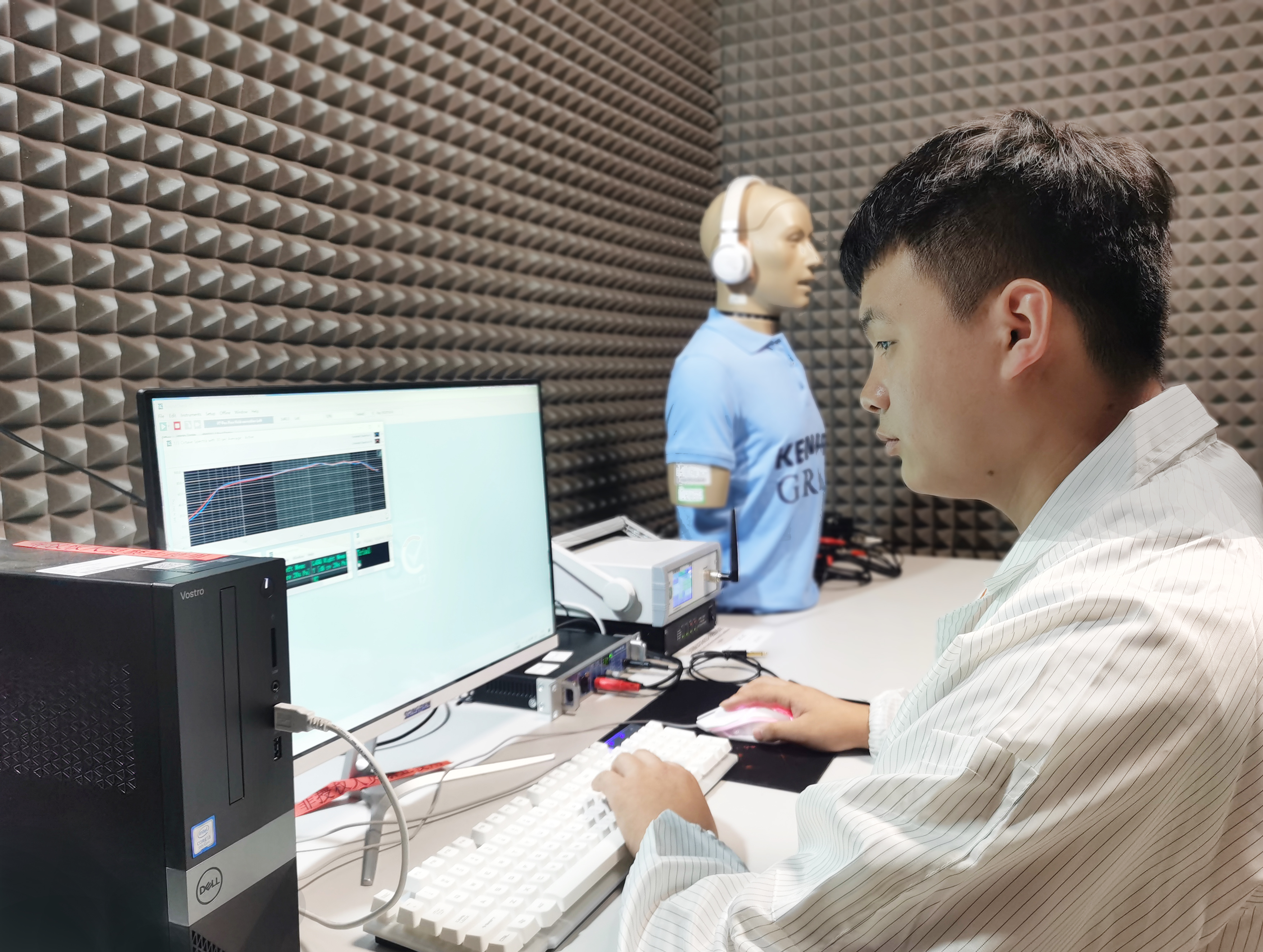依据EN 50332-1及EN 50332-2标准,采用GRAS 的人工头耳蜗,使用soundcheck 18最新软件版本, 进行声压测试。主要功能测量耳机类产品模拟信号 的输入电压,数字信号的输出声压分贝值,便携式 音频播放器,音频输出电压。